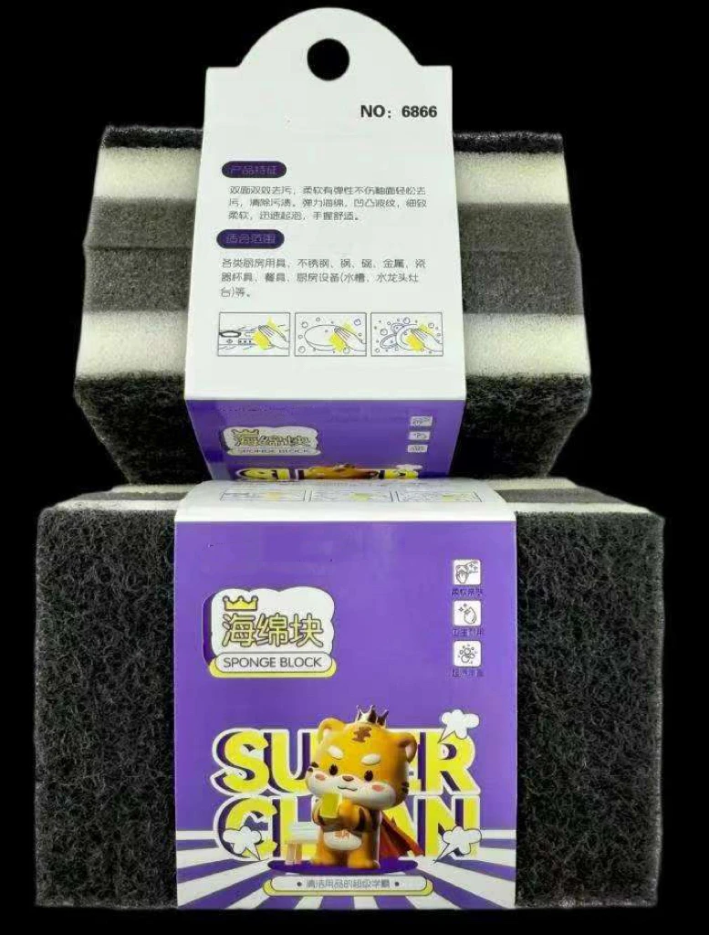 Black And White Three-layer Cleaning Sponge 2-piece set #6866