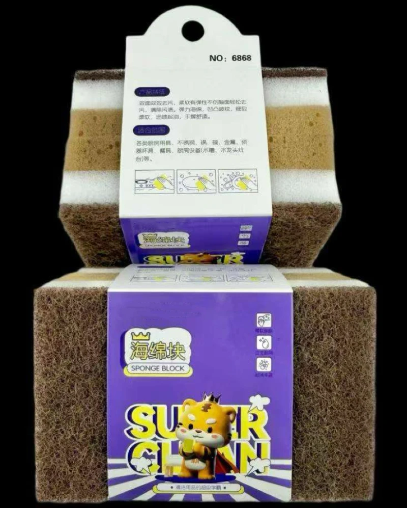 Brown Three-layer Cleaning Sponge 2-piece set #6868
